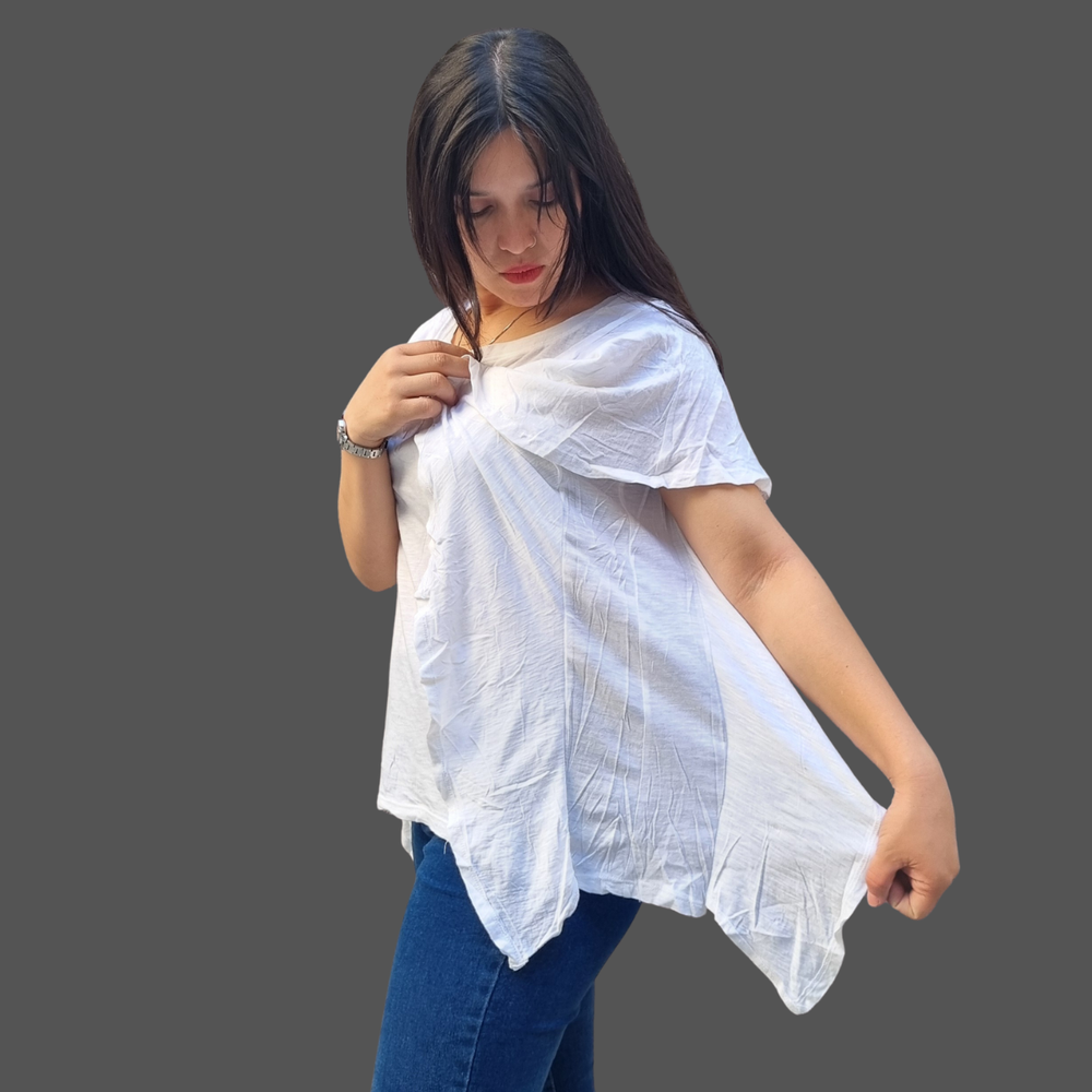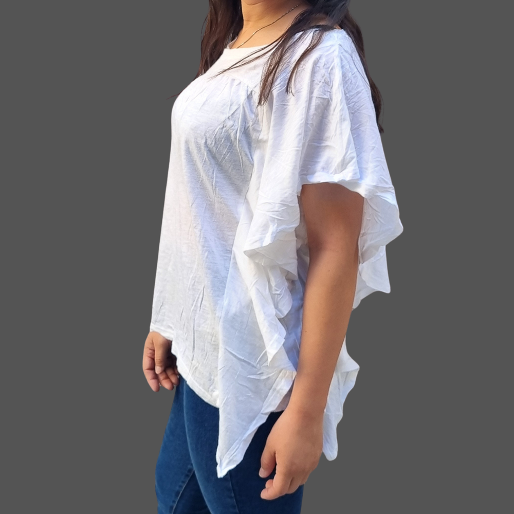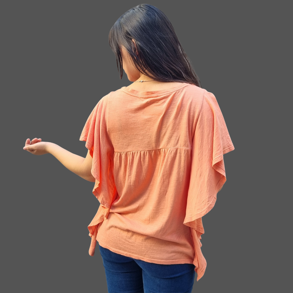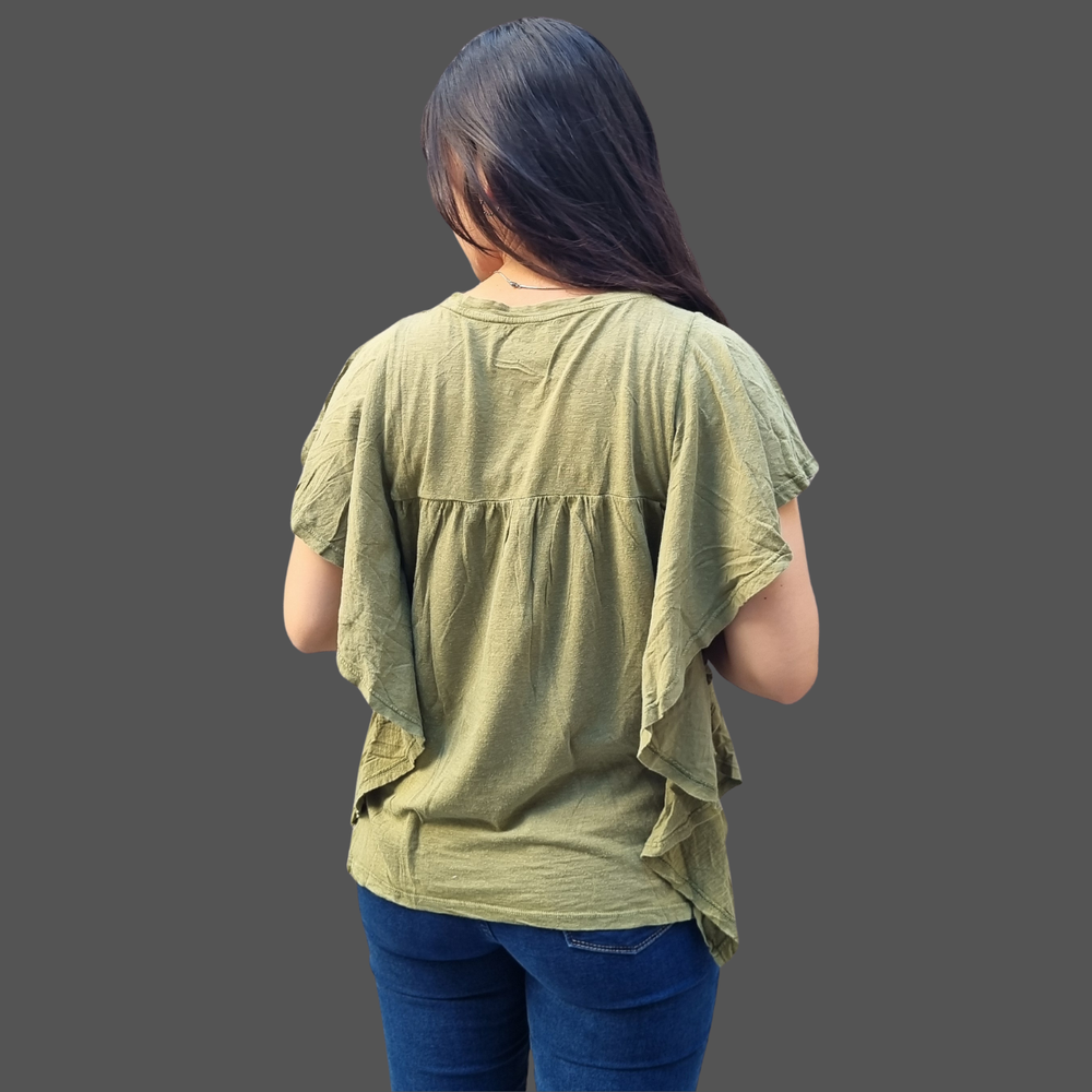 BLUSA CUELLO REDONDO VOLADOS LATERALES MARCA: Wonderly ORIGEN: India COMPOSICIÓN: Algodón 60% - Modal 40%