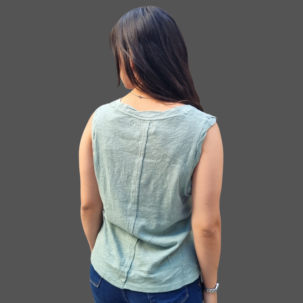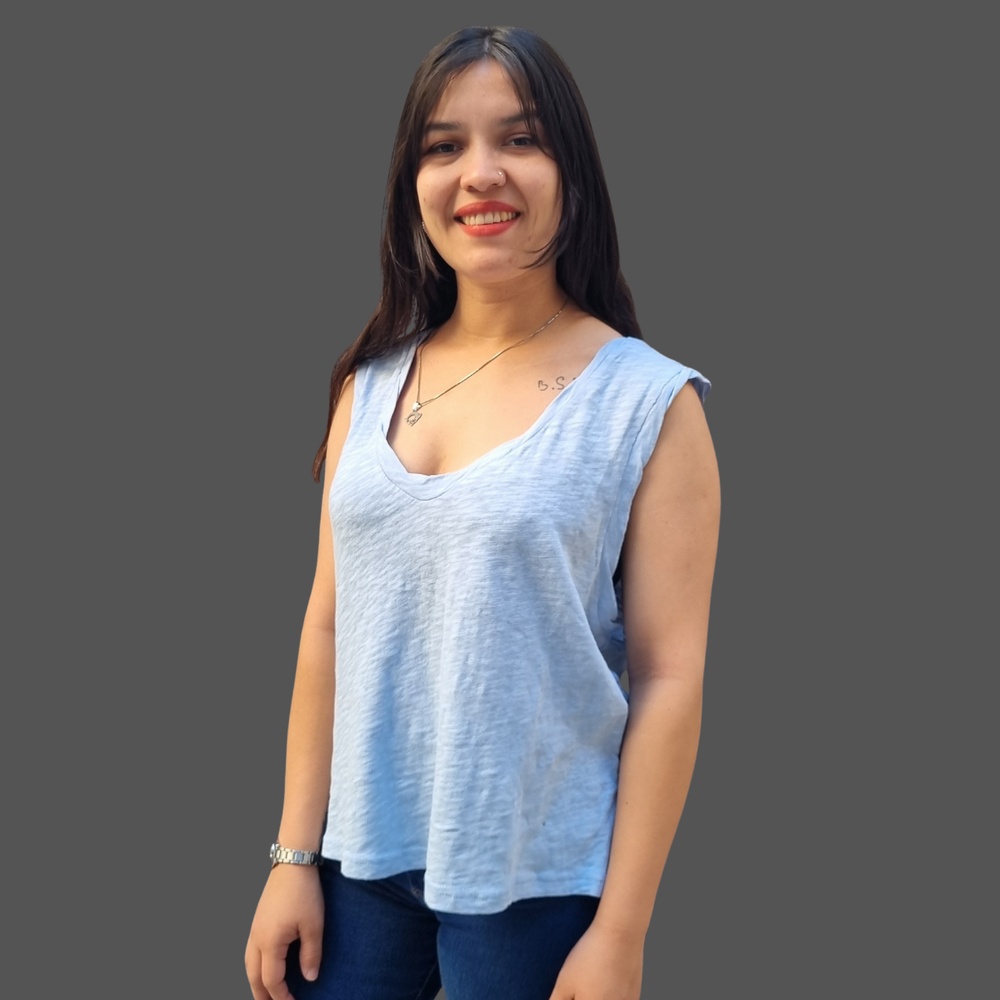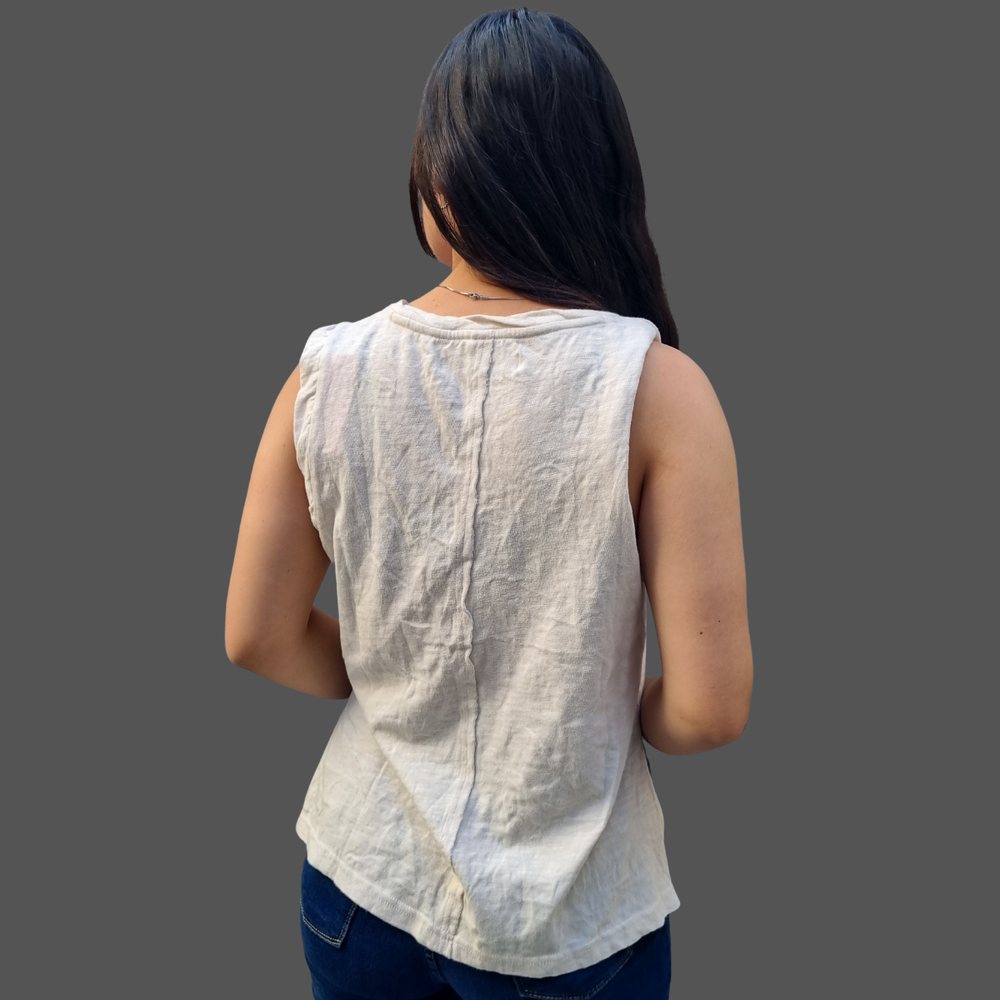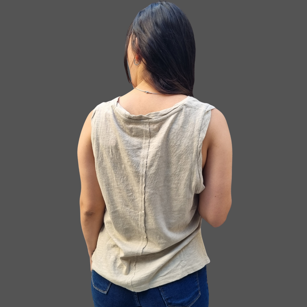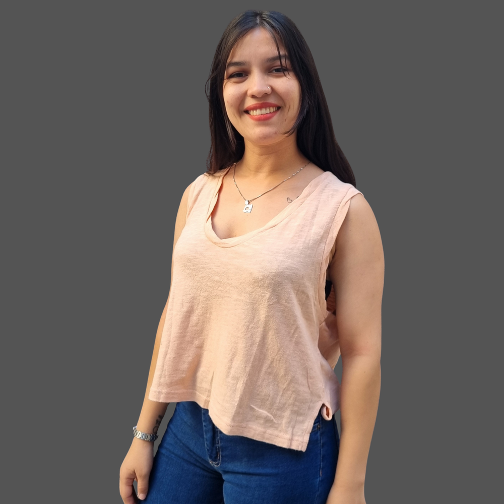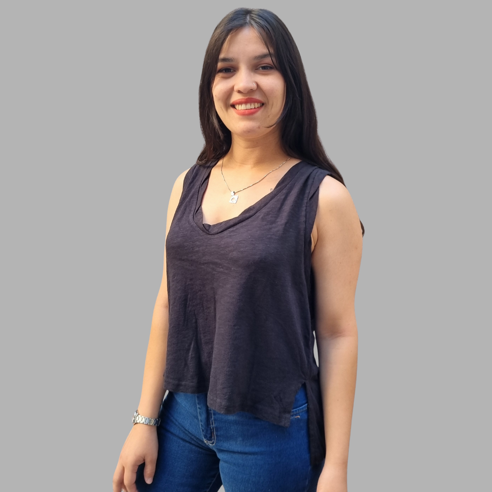 MUSCULOSA CUELLO V COSTURA INVERSA MARCA: Free People ORIGEN: India COMPOSICIÓN: Algodón 100%