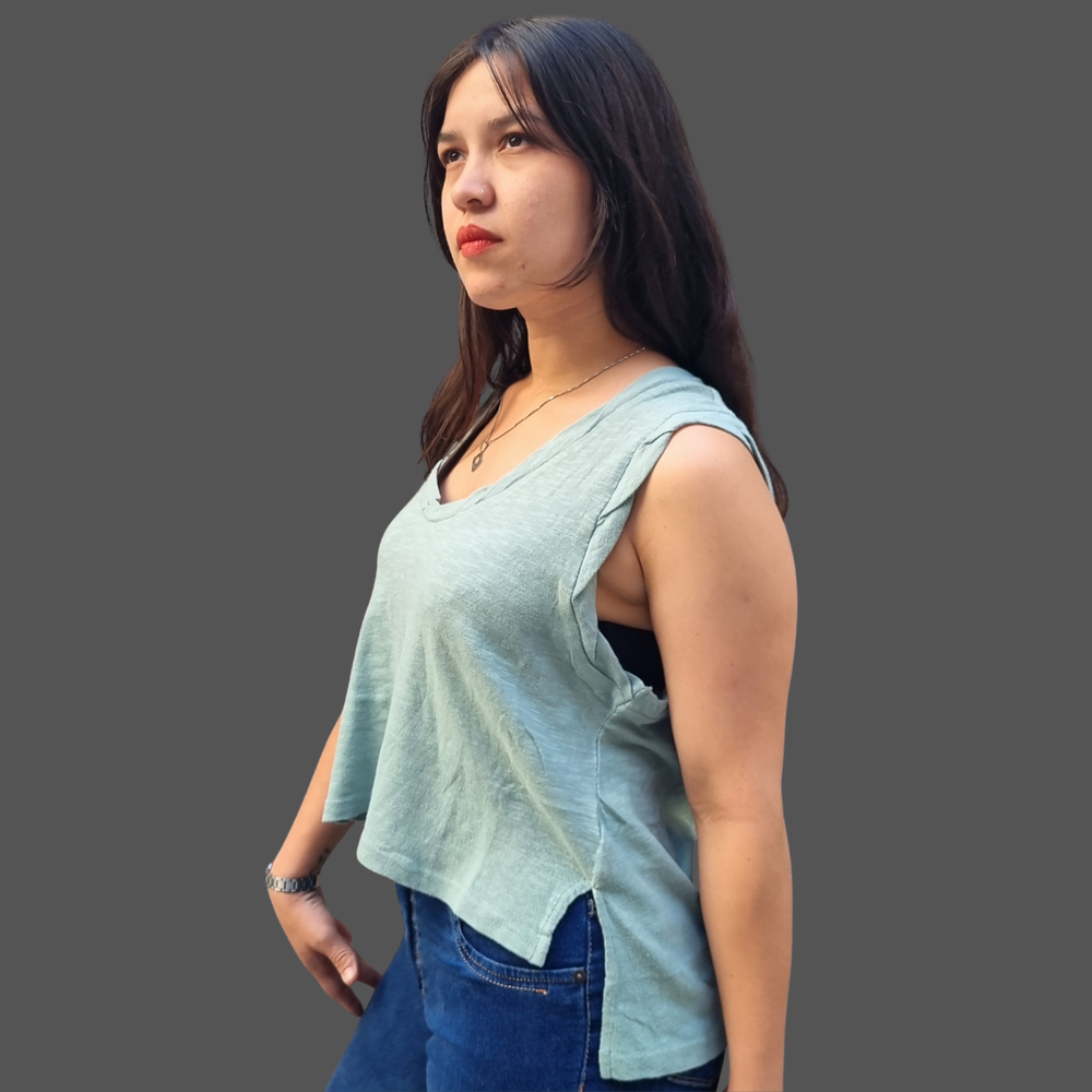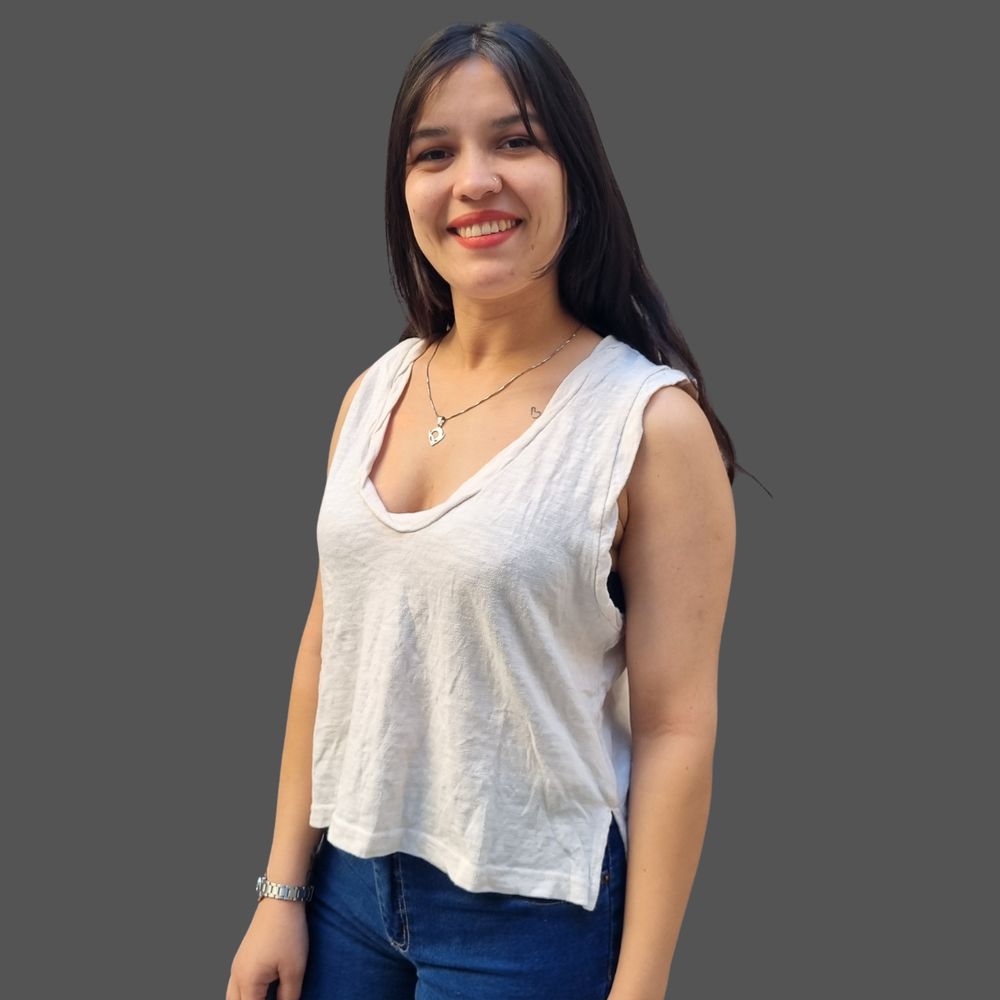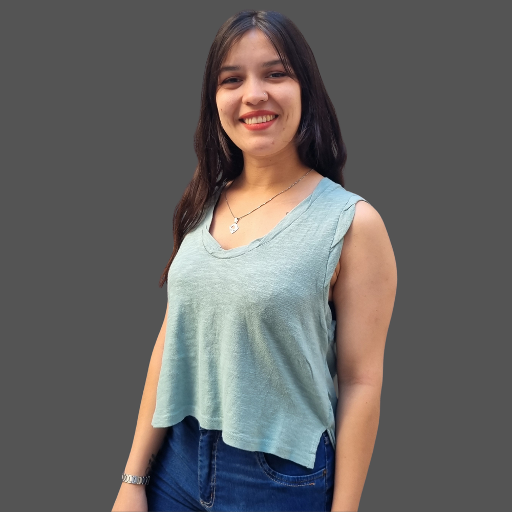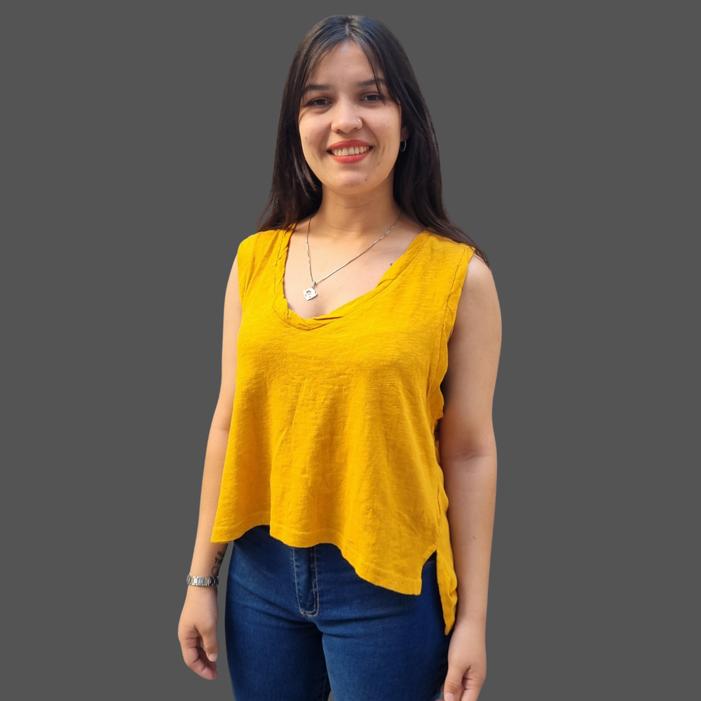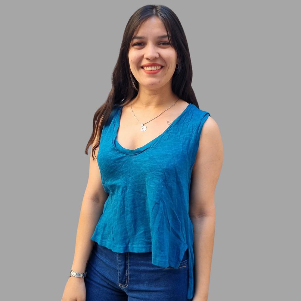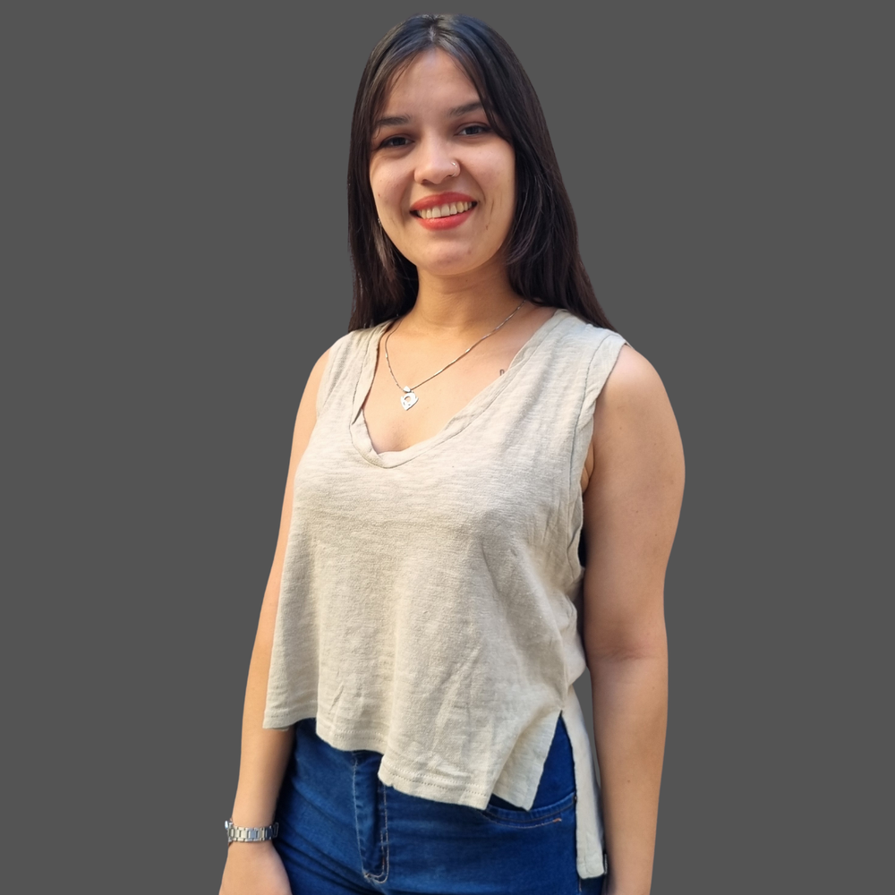 MUSCULOSA CUELLO V COSTURA INVERSA MARCA: Free People ORIGEN: India COMPOSICIÓN: Algodón 100%