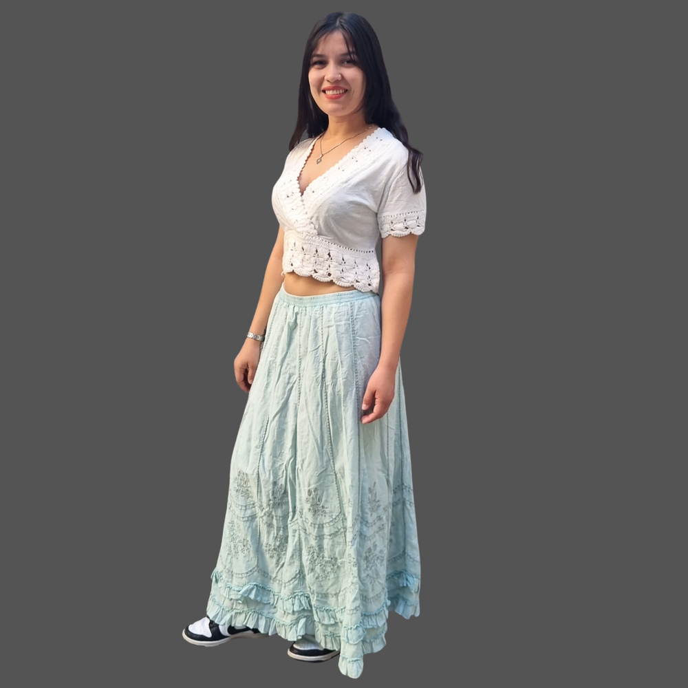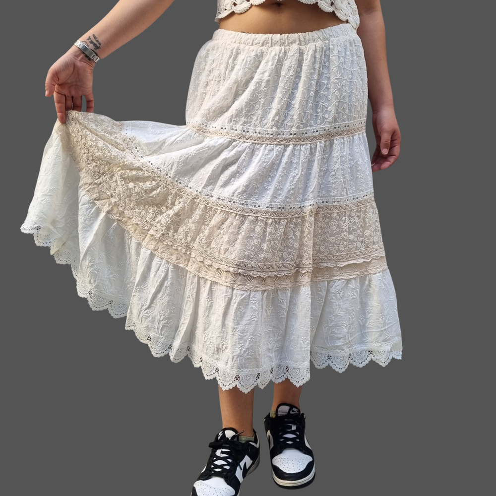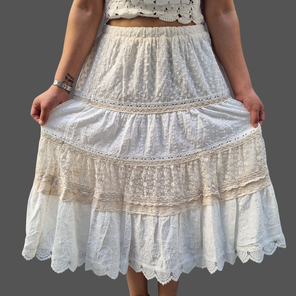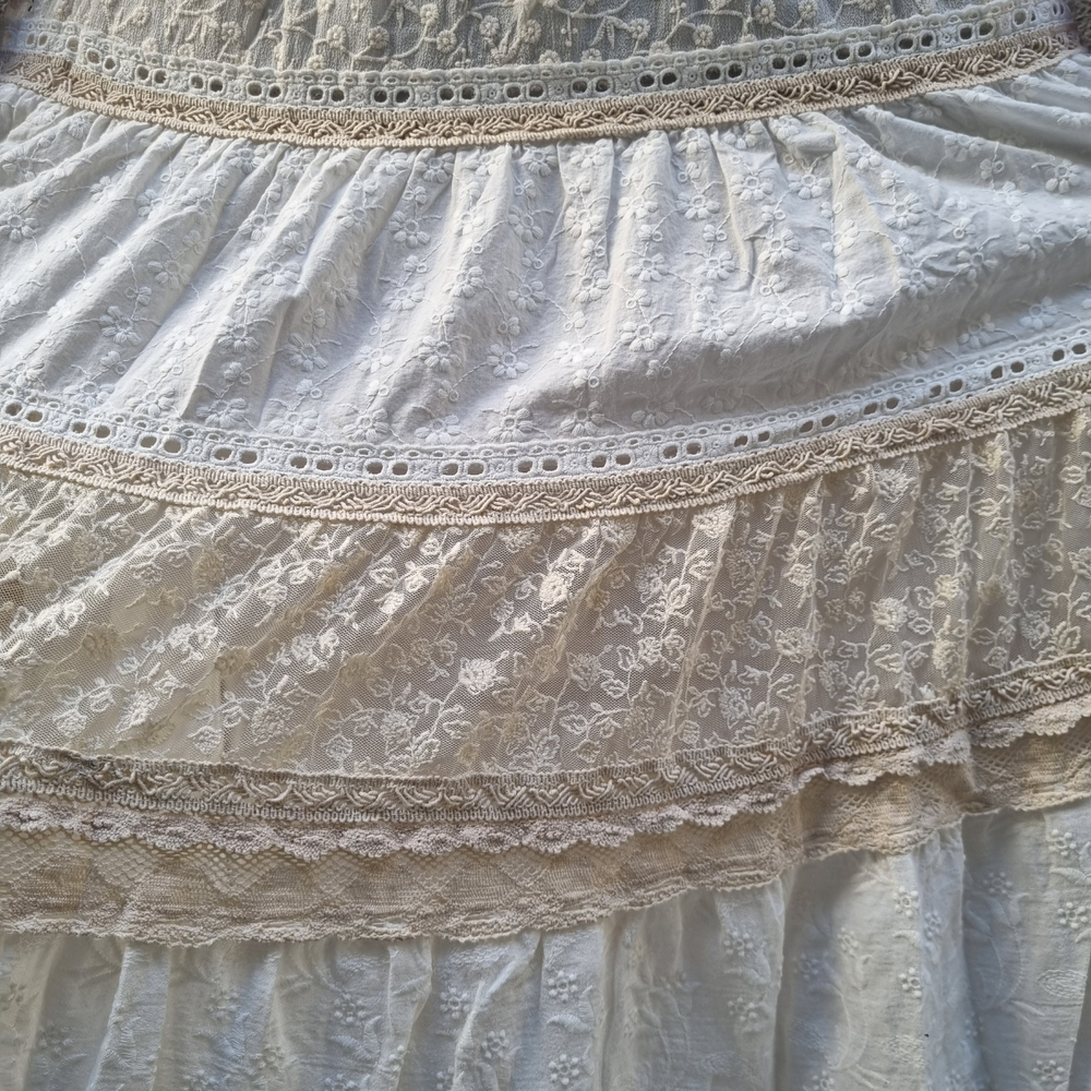 Pollera Bordado Flores hilo - encaje MARCA: Coldwater Creek ORIGEN: India COMPOSICIÓN: Algodon 100%