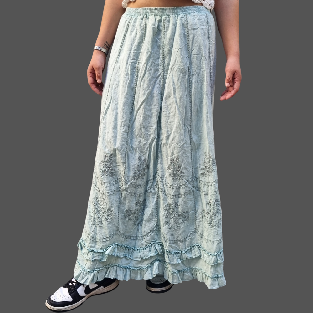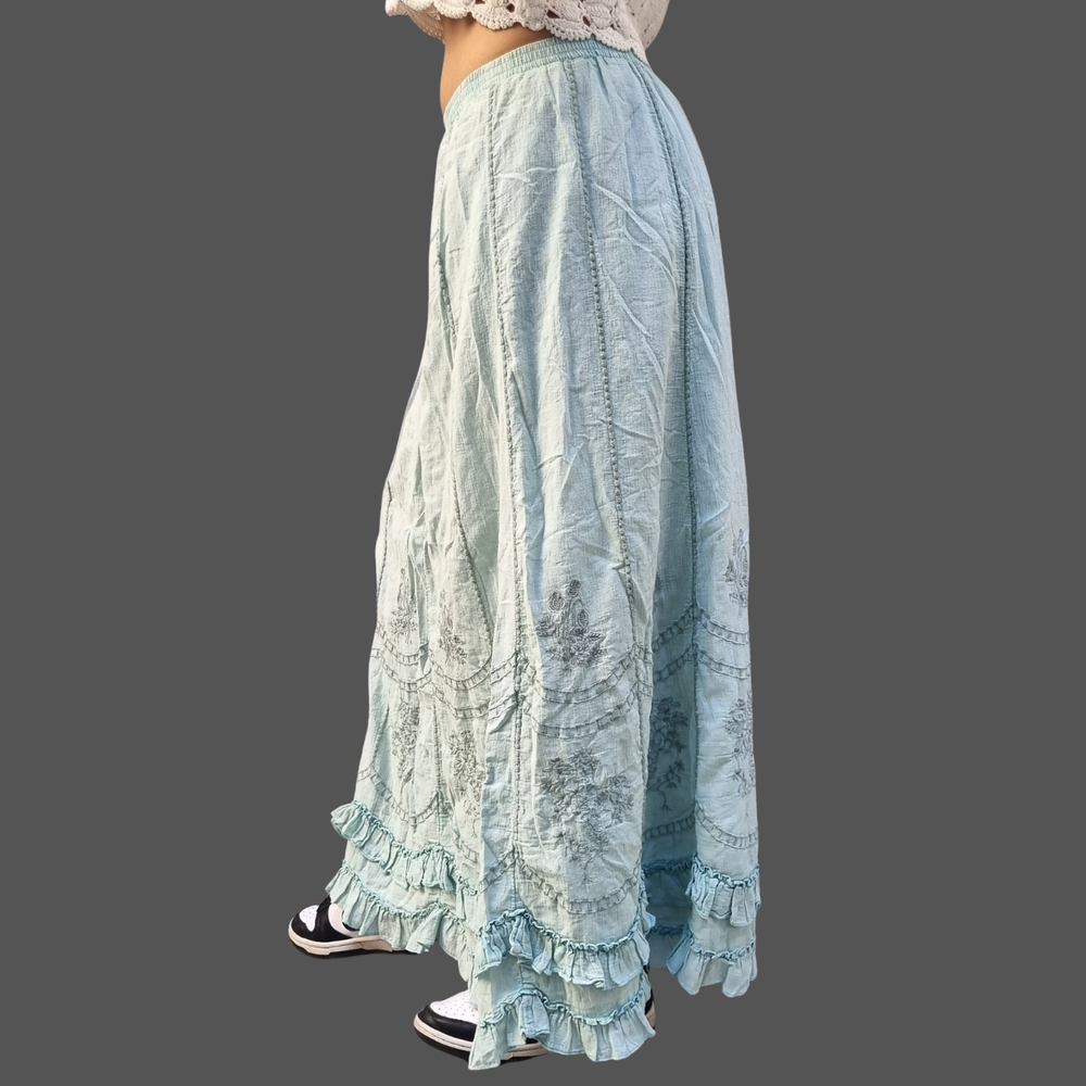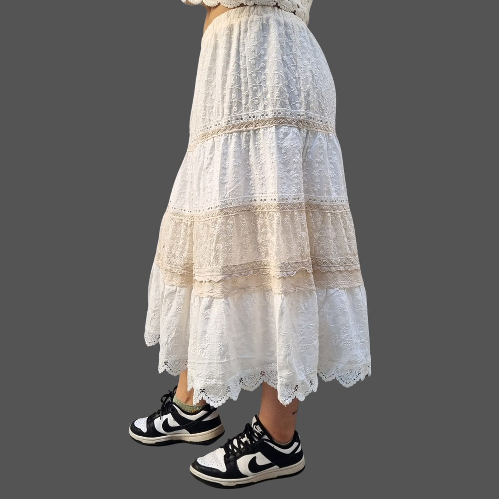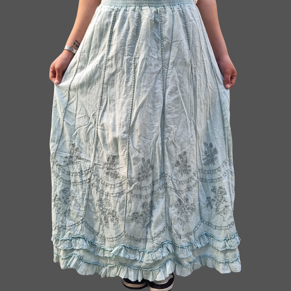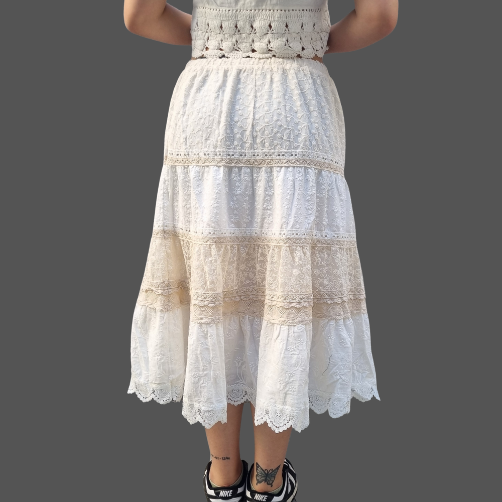 Pollera Bordado Flores hilo - encaje MARCA: Coldwater Creek ORIGEN: India COMPOSICIÓN: Algodon 100%