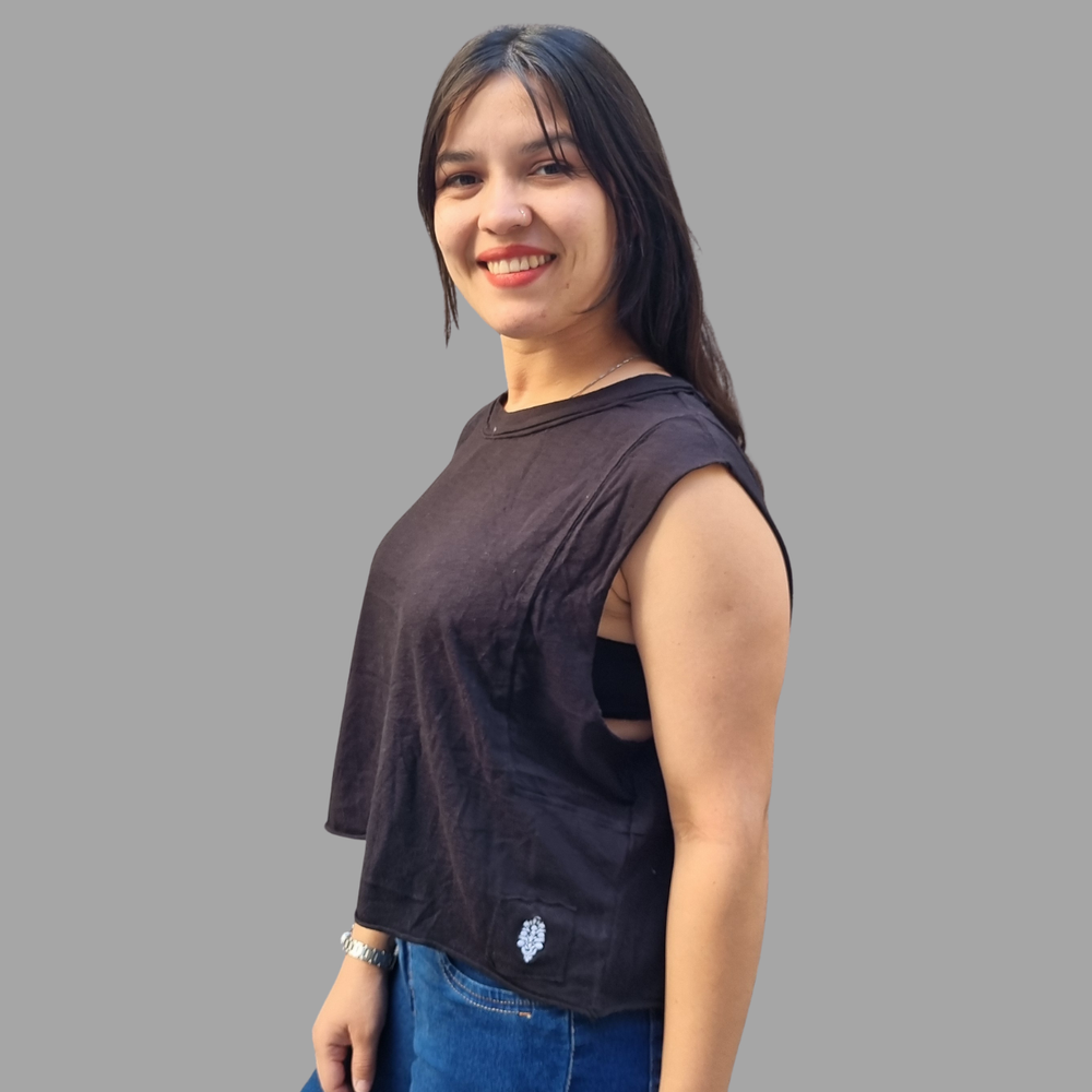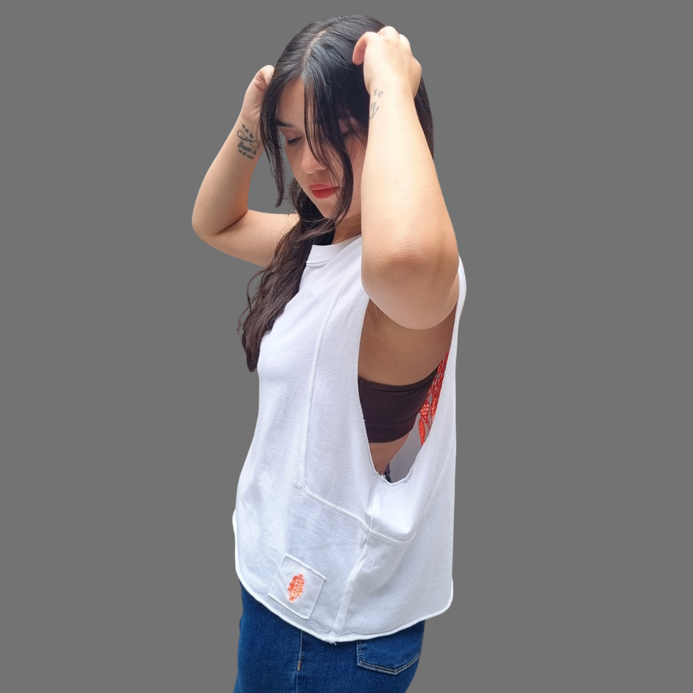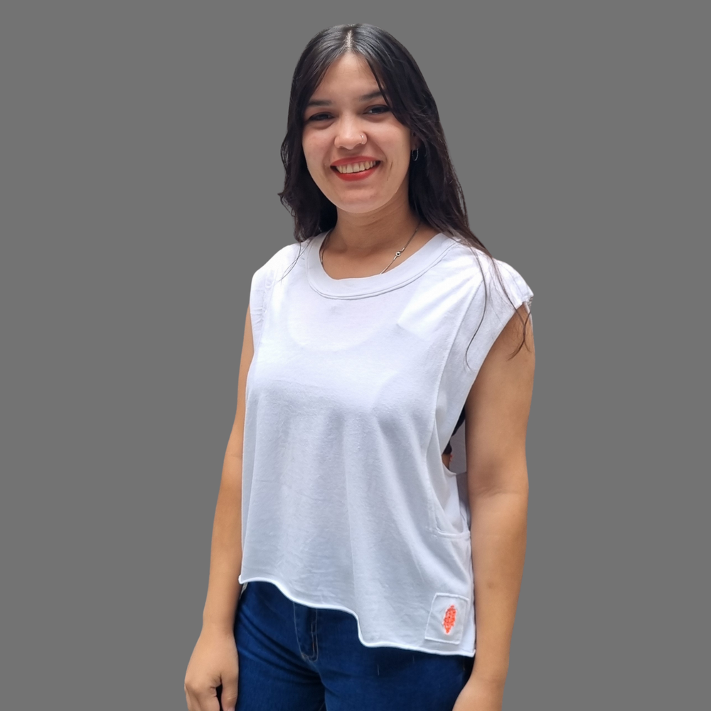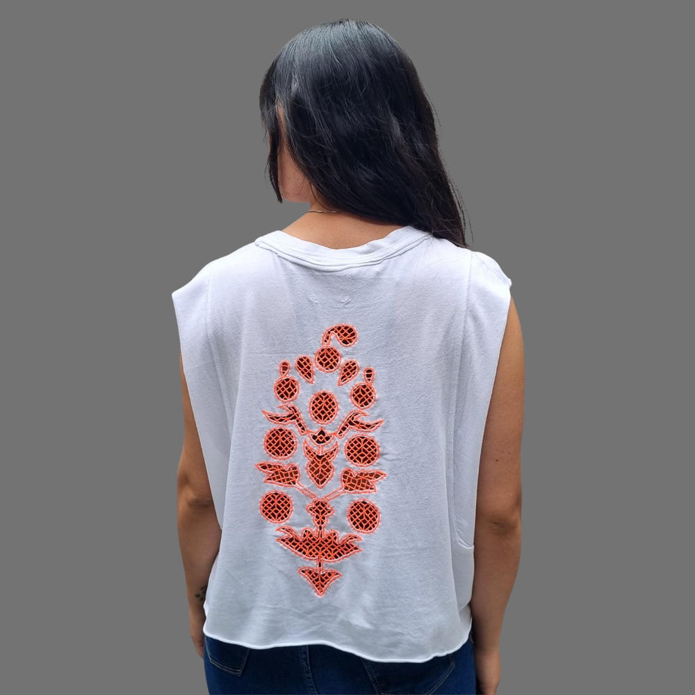 MUSCULOSA OVERSIZED ESPALDA BORDADA MARCA: Free People ORIGEN: India COMPOSICIÓN: Algodón 60% - Modal 40%