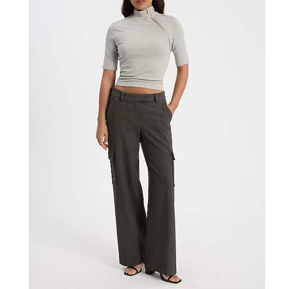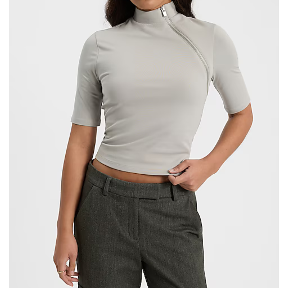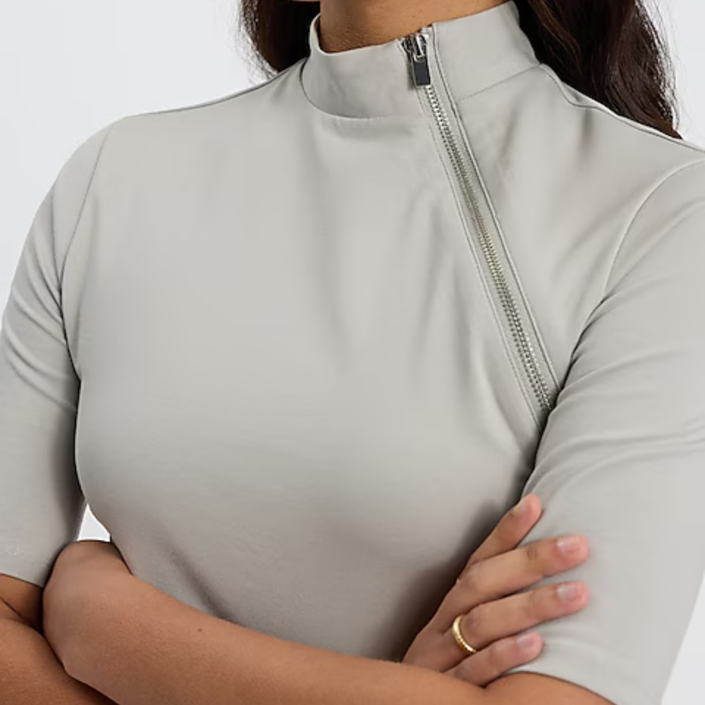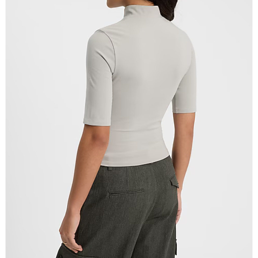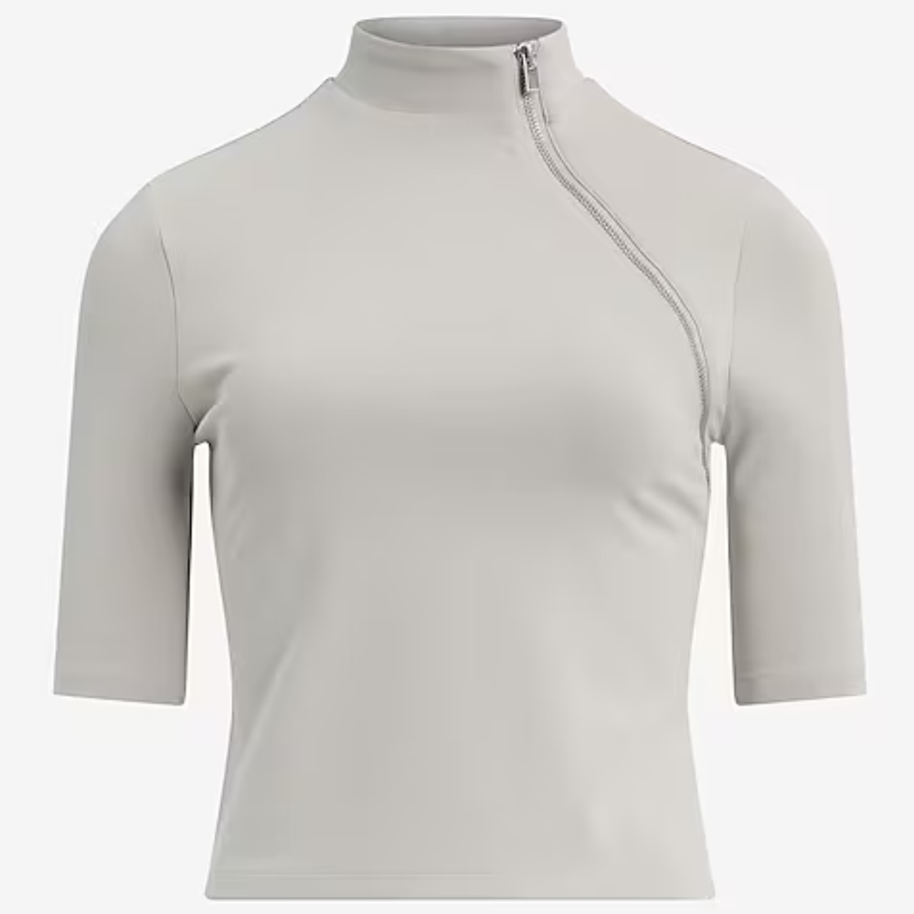Camiseta de algodón elastizado con cuello alto, mangas al codo y cierre MARCA: Express ORIGEN: India COMPOSICIÓN: Algodón