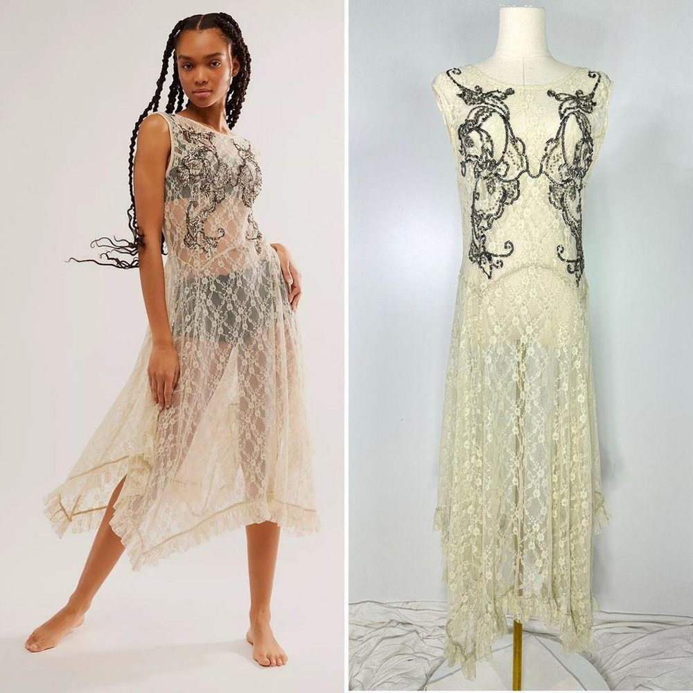 VESTIDO MAXI LARGO ENCAJE PECHERA BORDADA MARCA: Free People ORIGEN: India COMPOSICIÓN: Nylon 87% - Elastane 13%