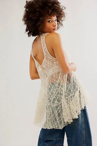 BLUSA VESTIDO TUL ENCAJE ESPALDA ABIERTA CON TIRA REGULABLE VOLADOS MARCA: Free People ORIGEN: India COMPOSICIÓN: Nylon 87% - Elastane 13%