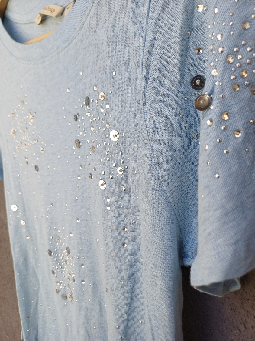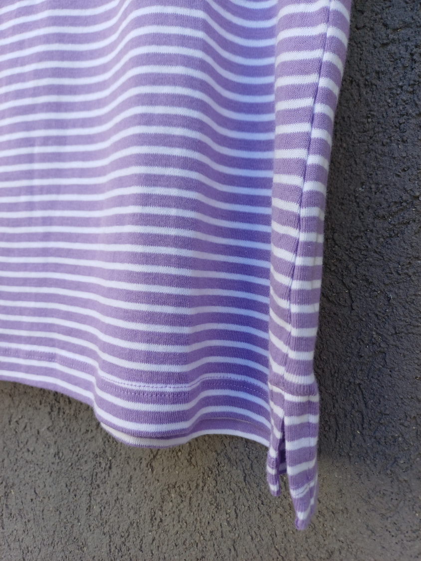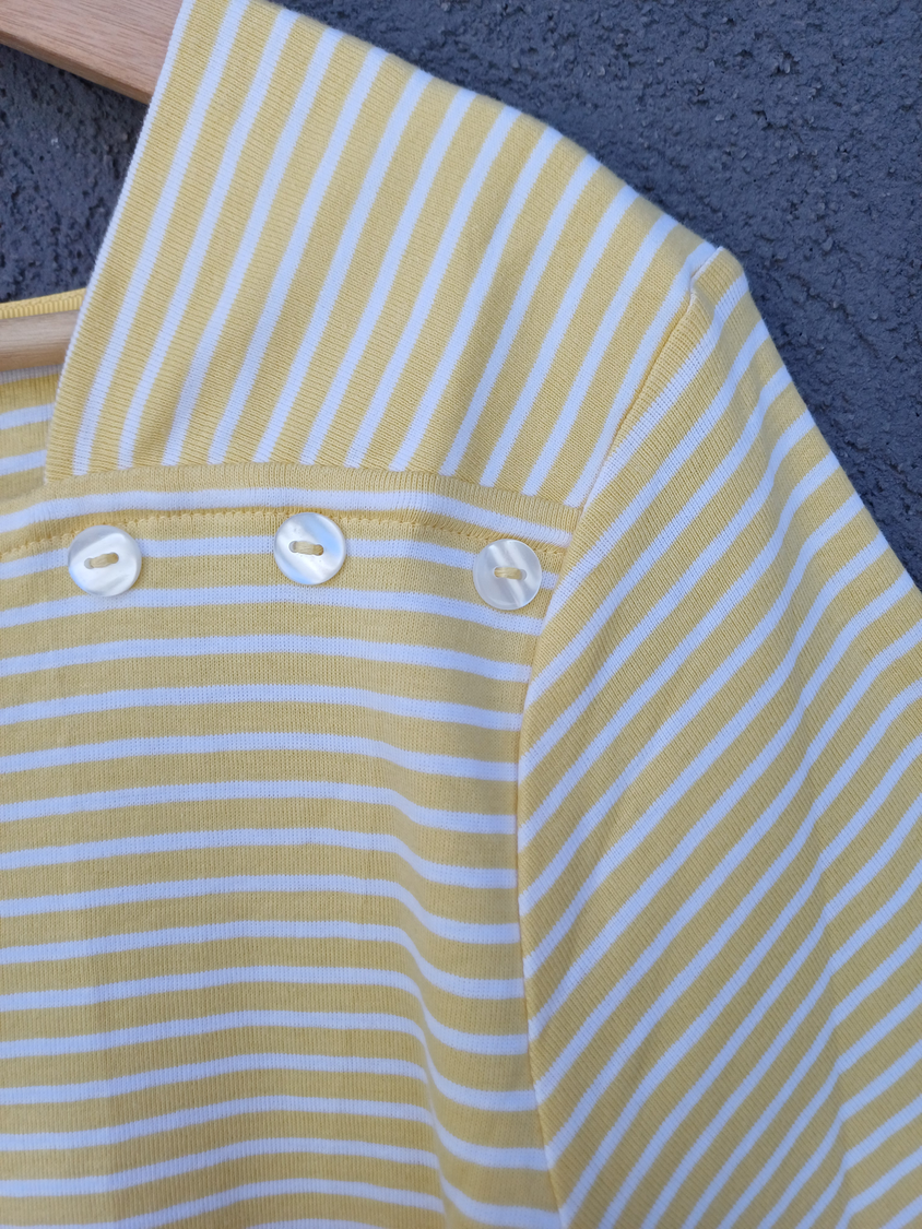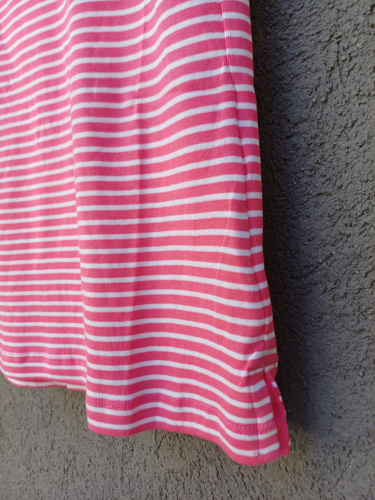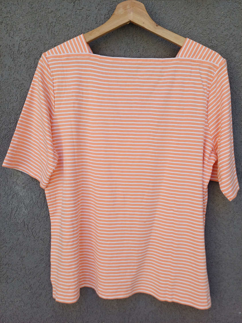 BLUSA RAYADA MANGA CORTA CUELLO CUADRADO CON DETALLE 3 BOTONES MARCA: APPLESEED´S ORIGEN: India COMPOSICIÓN: Algodón 100%