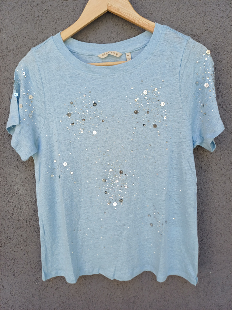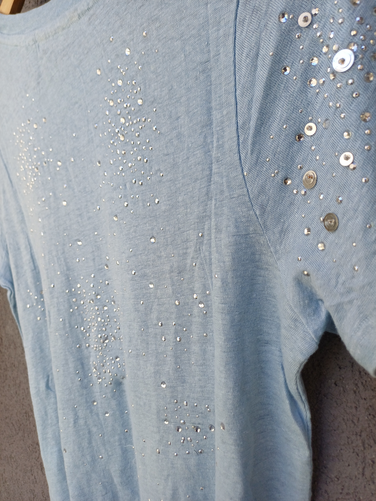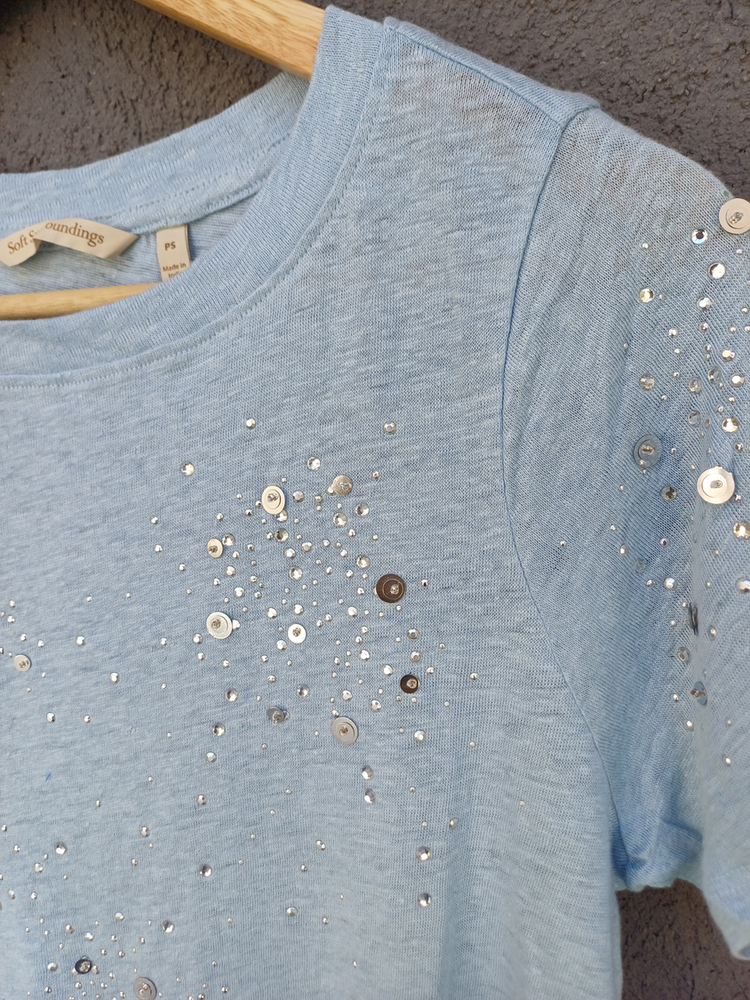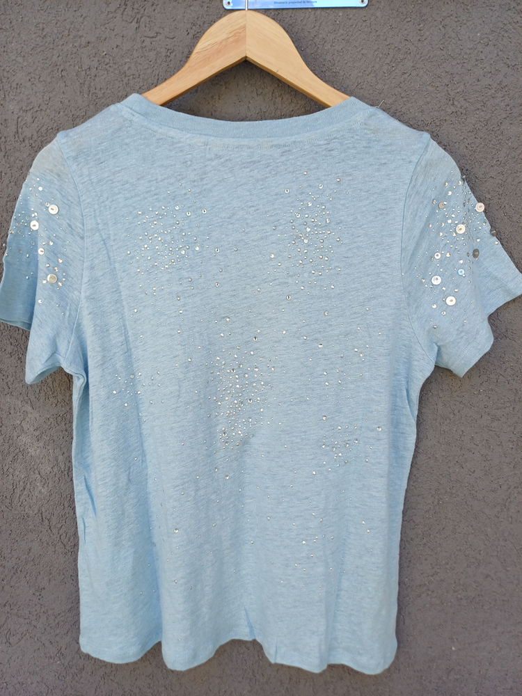 BLUSA REMERA CON DETALLE DE STRASS MANGA CORTA CUELLO REDONDO MARCA: Soft Surroundings COMPOSICIÓN: Hilo Algodón 100%