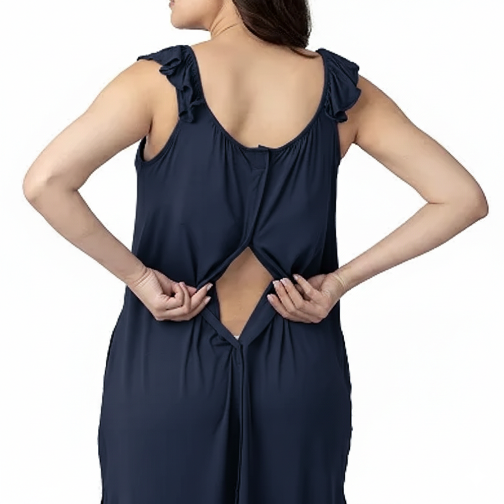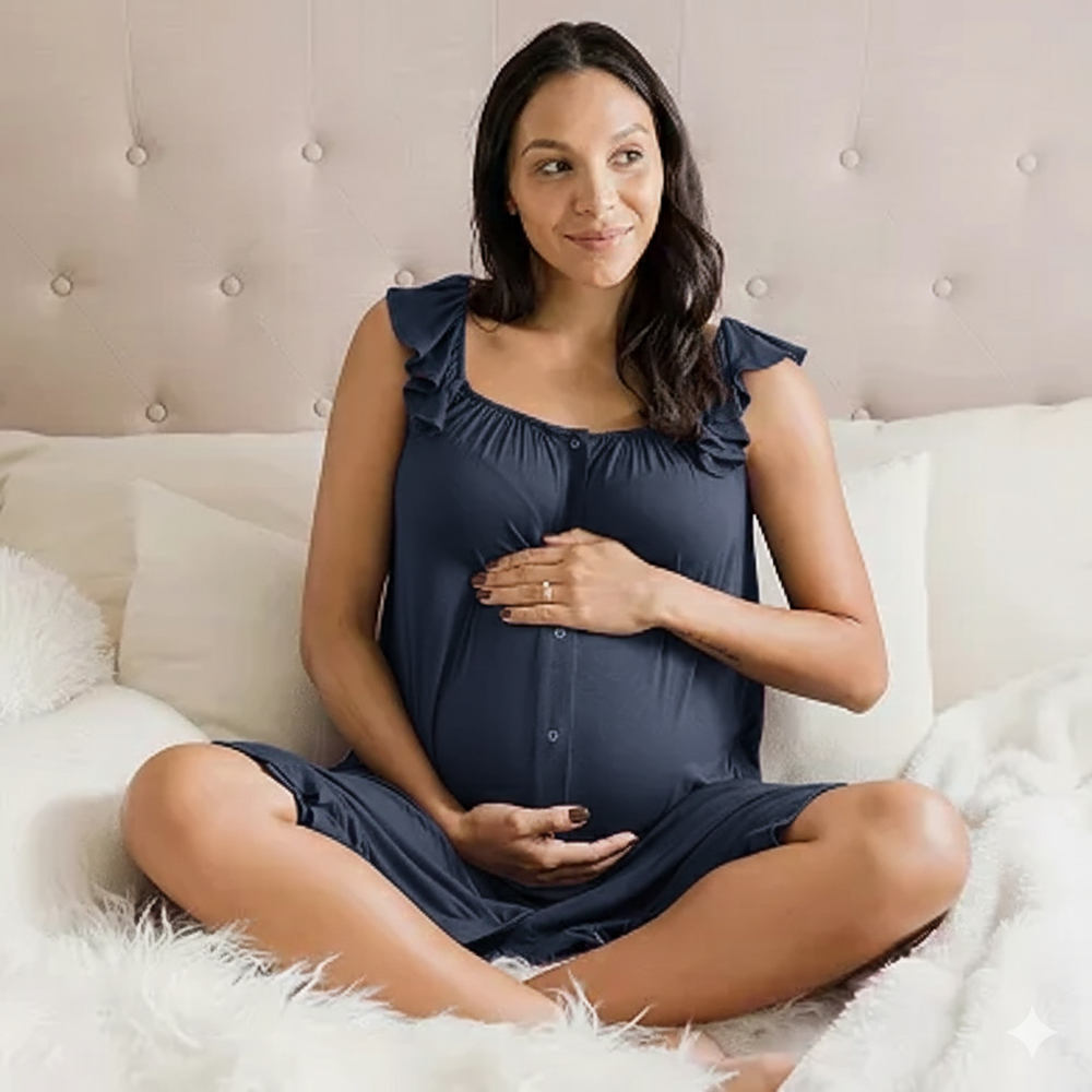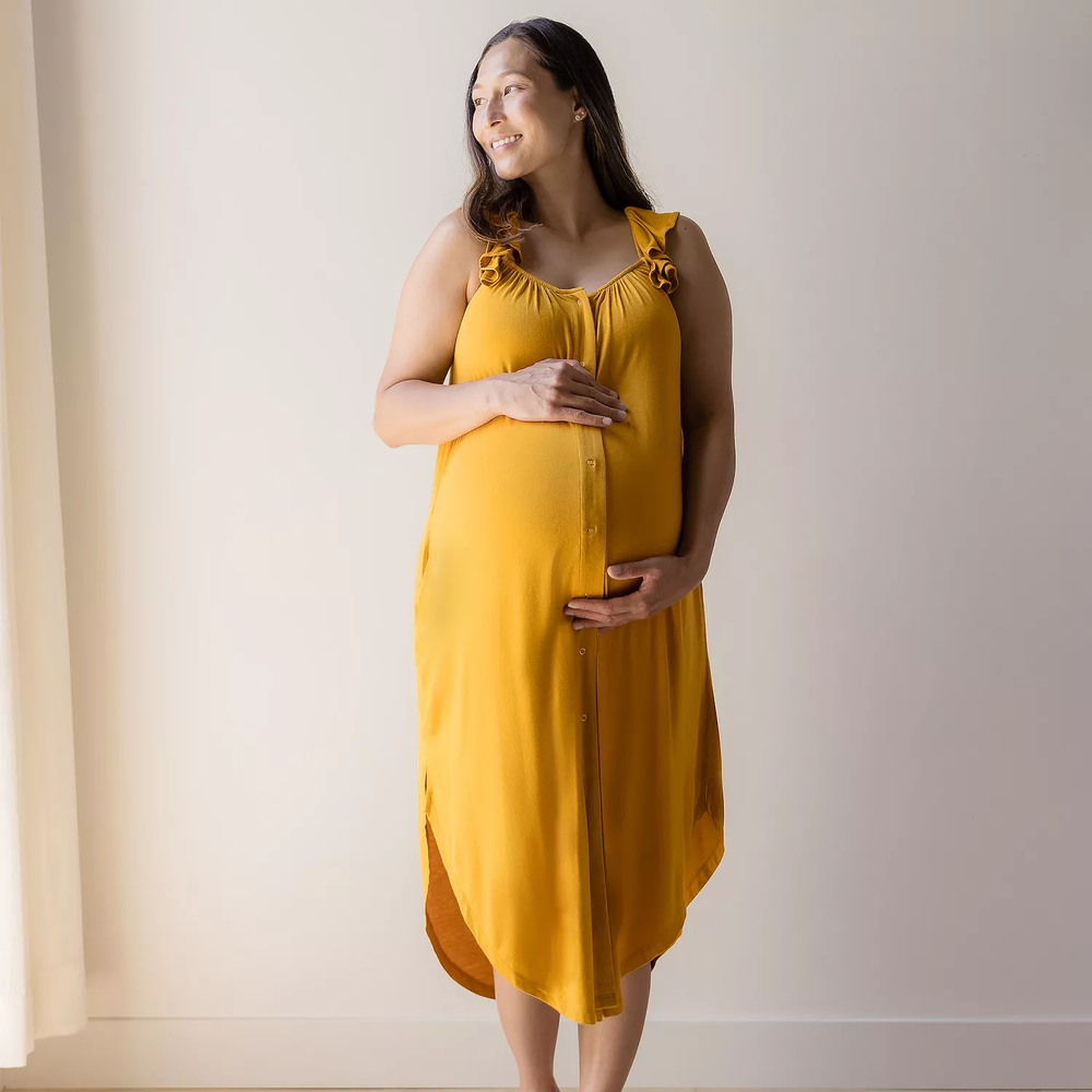 VESTIDO MATERNIDAD ABOTONADO en la parte de adelante y con abrojo en el hombro y espalda MARCA: Kindred Bravely ORIGEN: India COMPOSICIÓN: Viscosa 95% - Spandex 5%