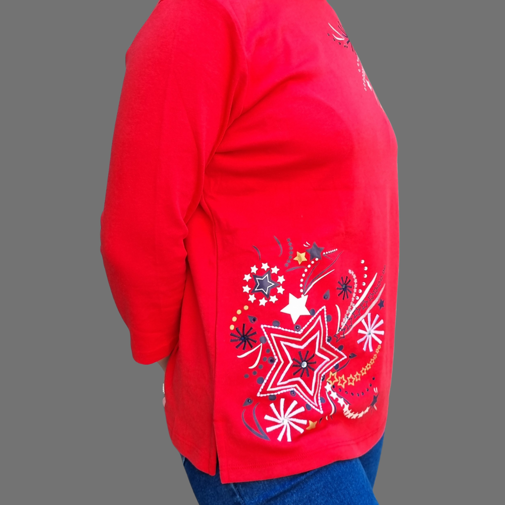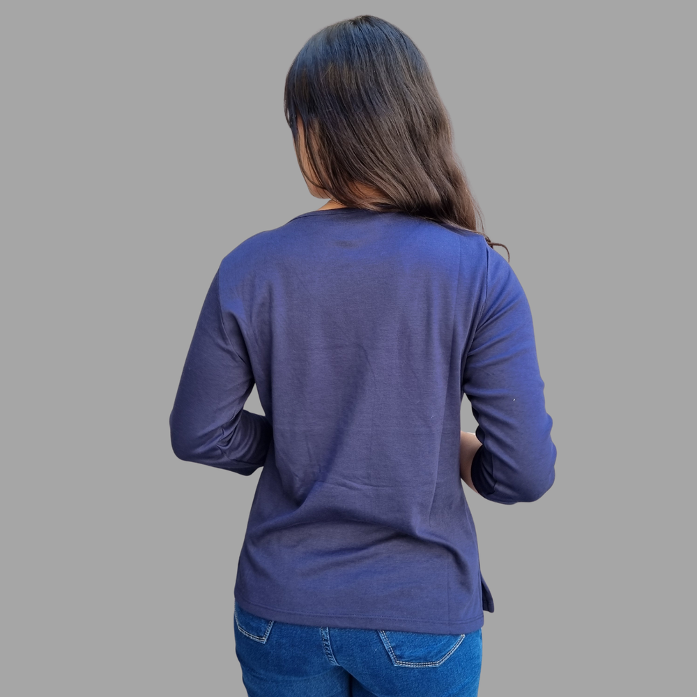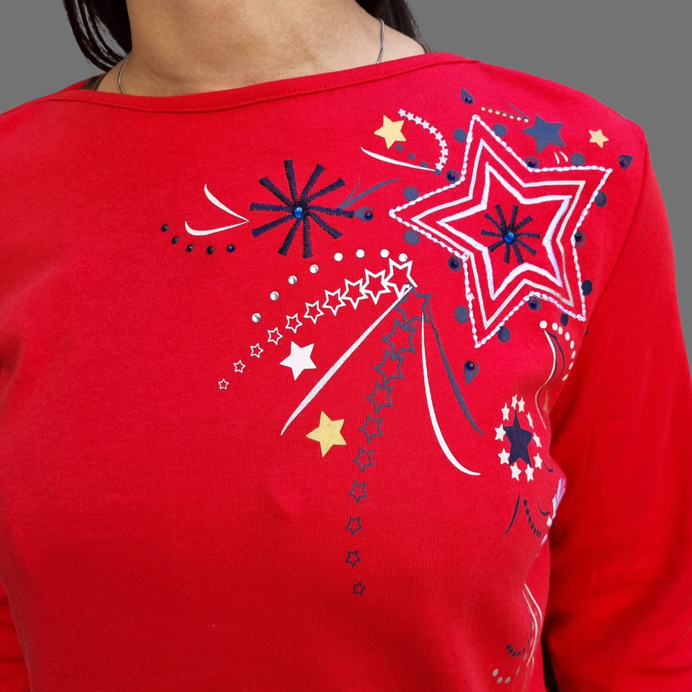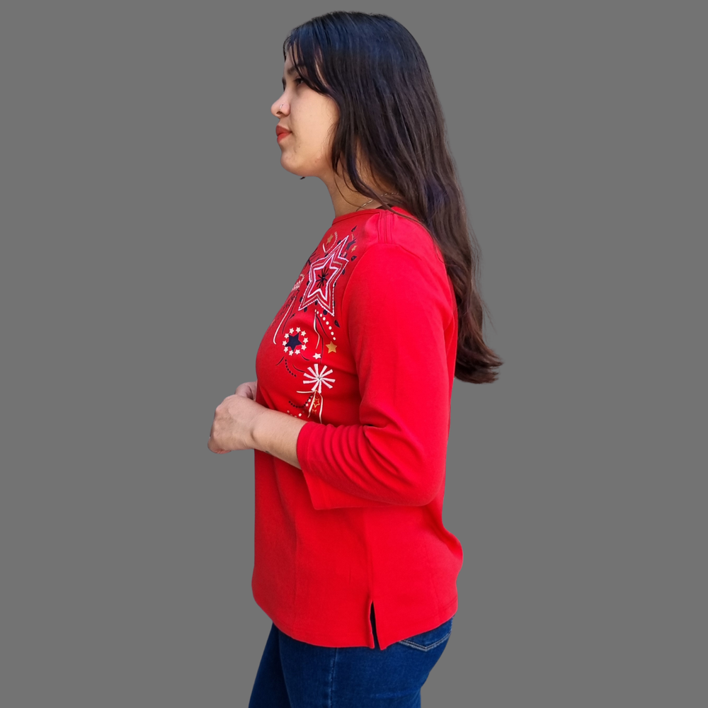 Blusa manga 3/4 bordado hilo detalle strass MARCA: Draper´s&Damon´s ORIGEN: India COMPOSICIÓN: Algodón 60% - Poliéster 40%