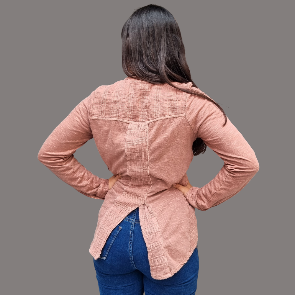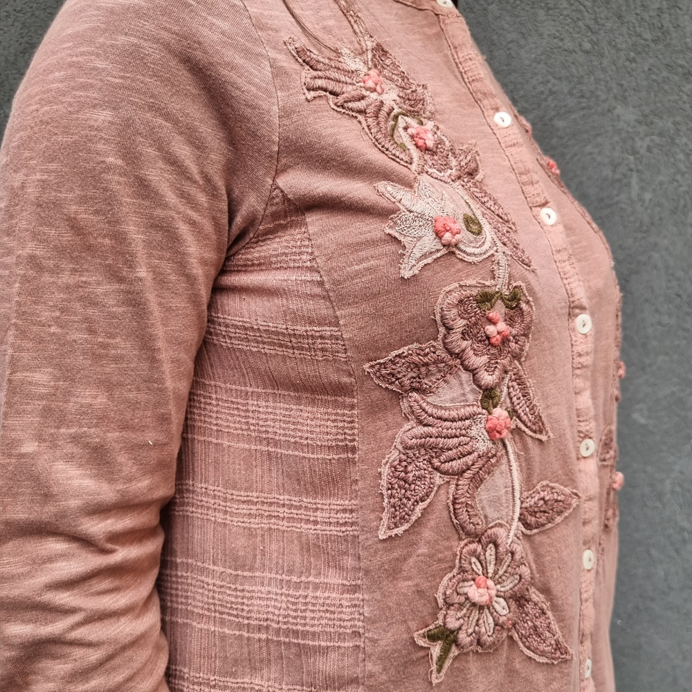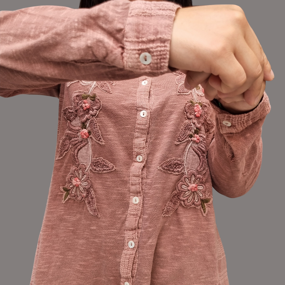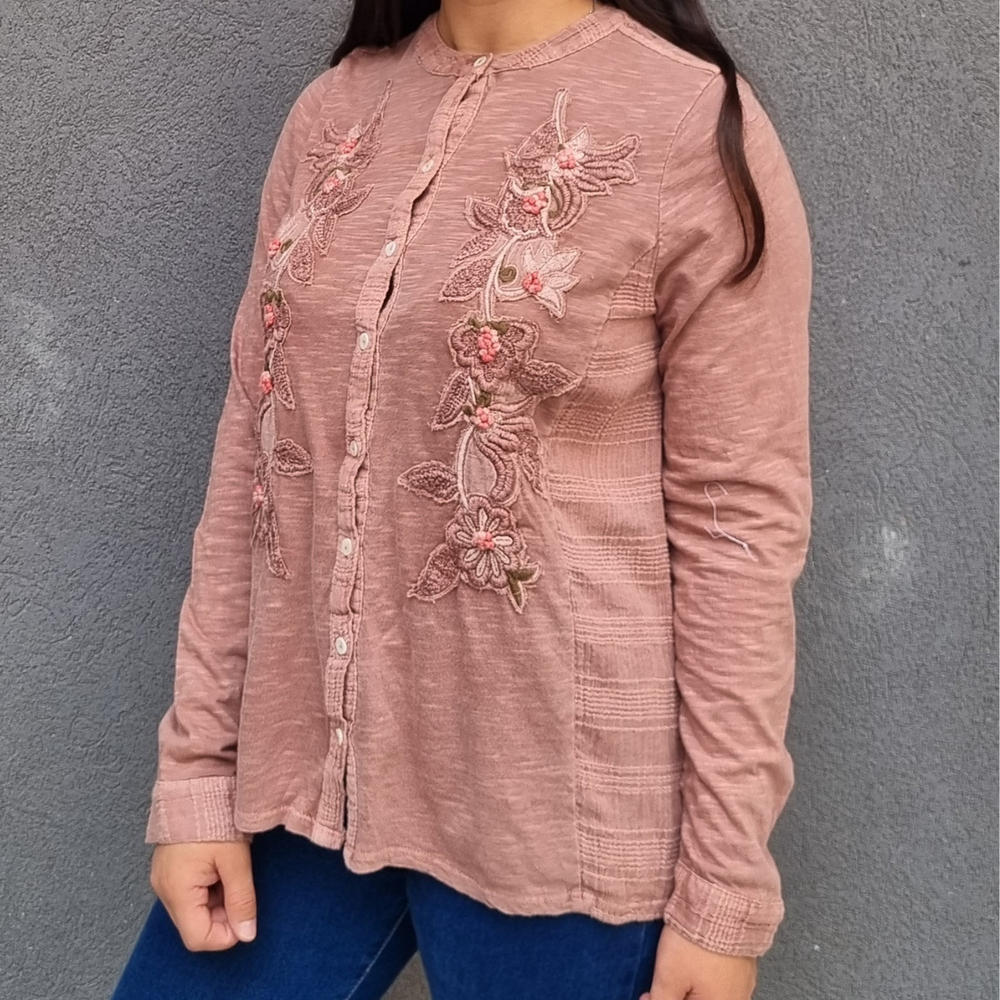 BLUSA CAMISA MANGA LARGA BORDADO FLORES ABOTONADO