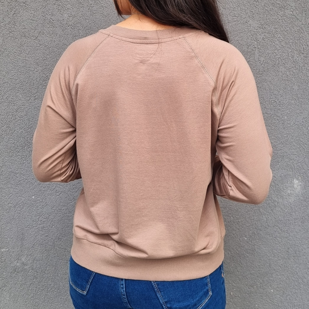 Blusa Camiseta manga larga suave cuello redondo