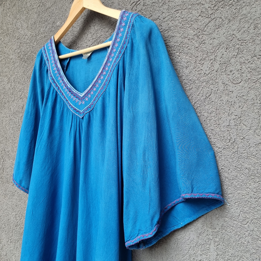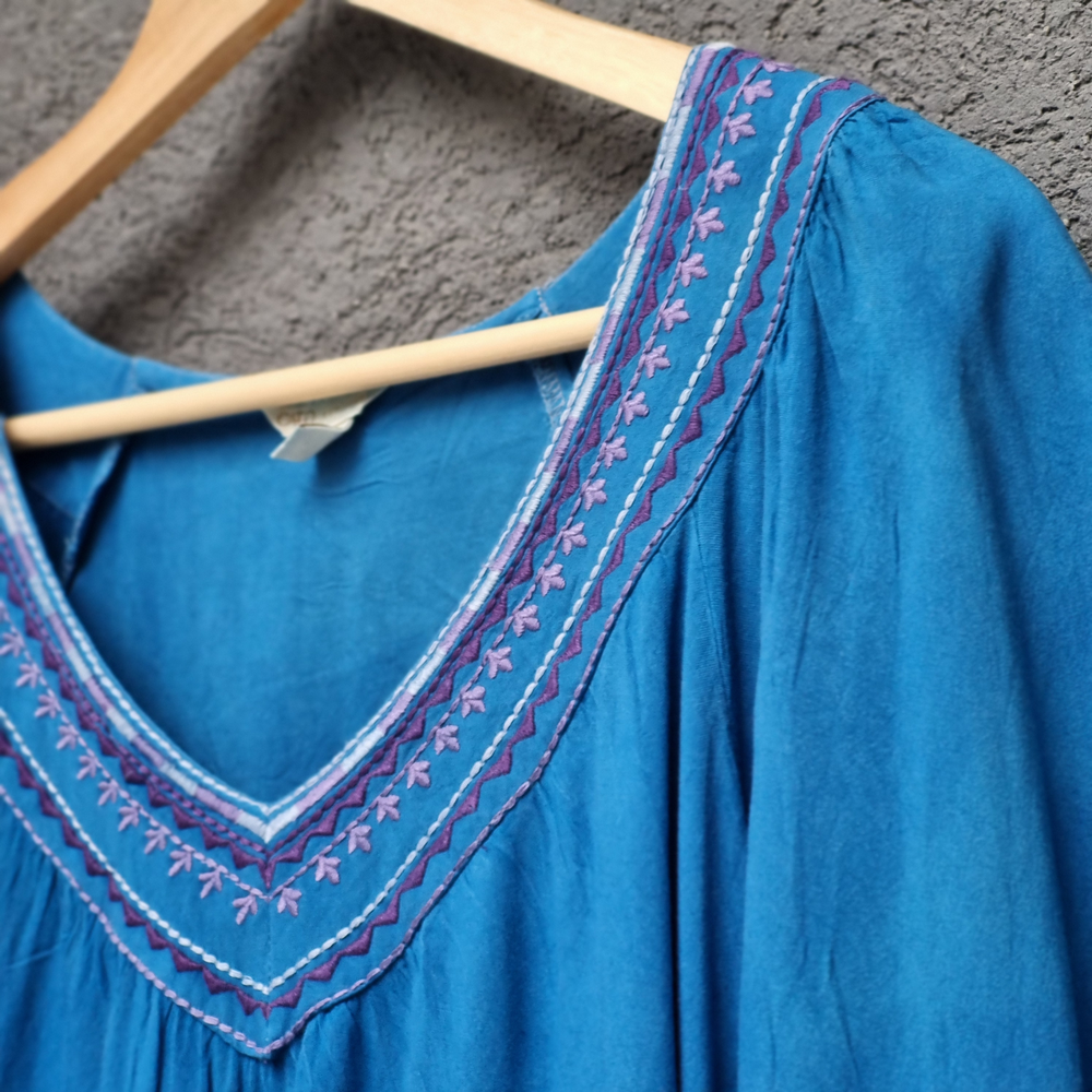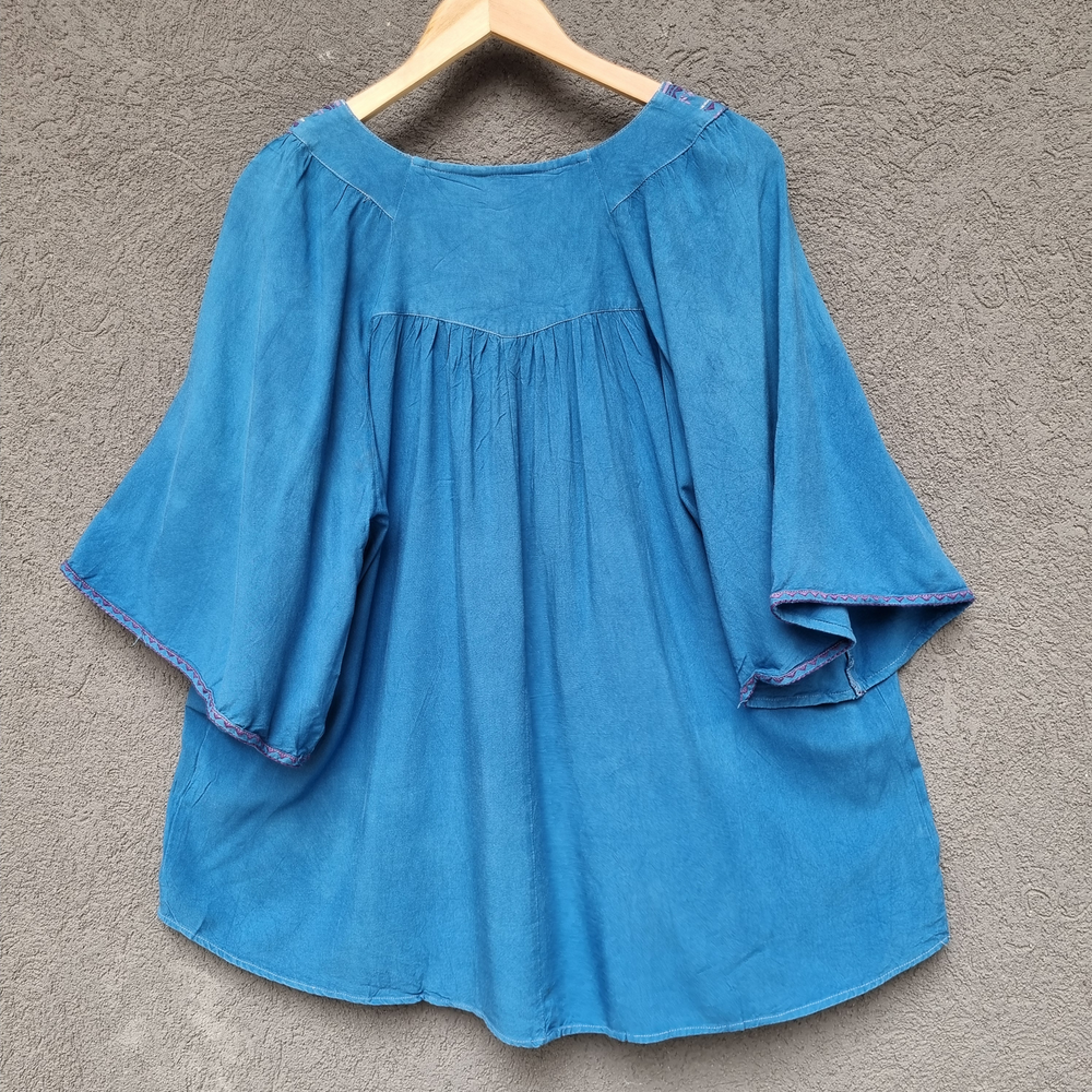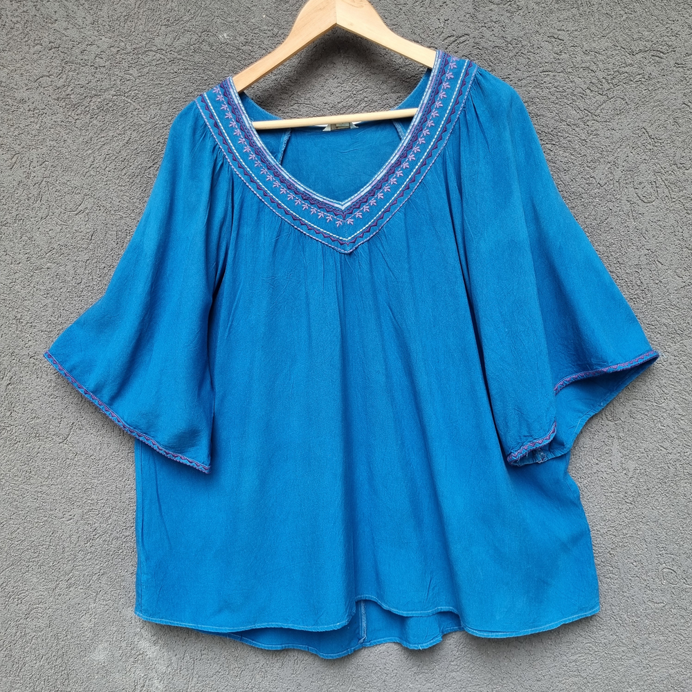 BLUSA MANGA CORTA ACAMPANADA CUELLO V BORDADO