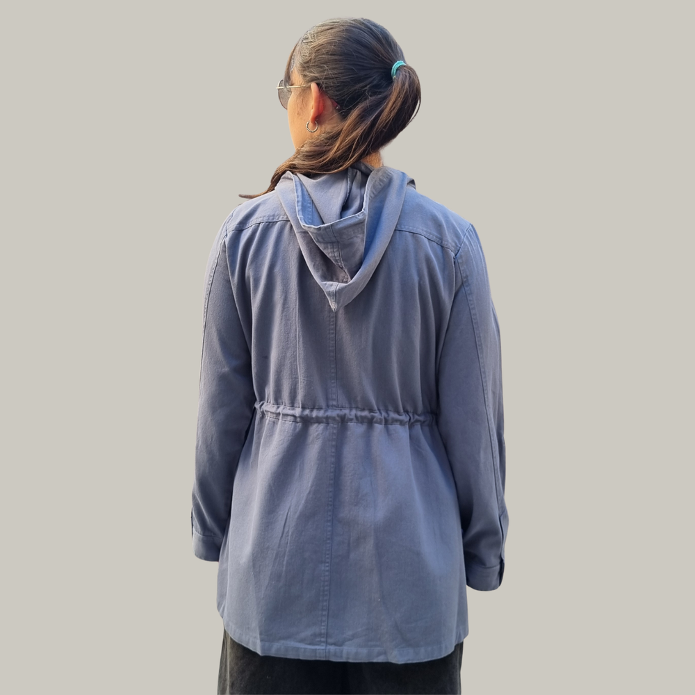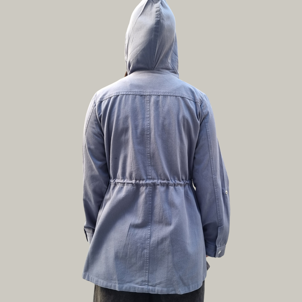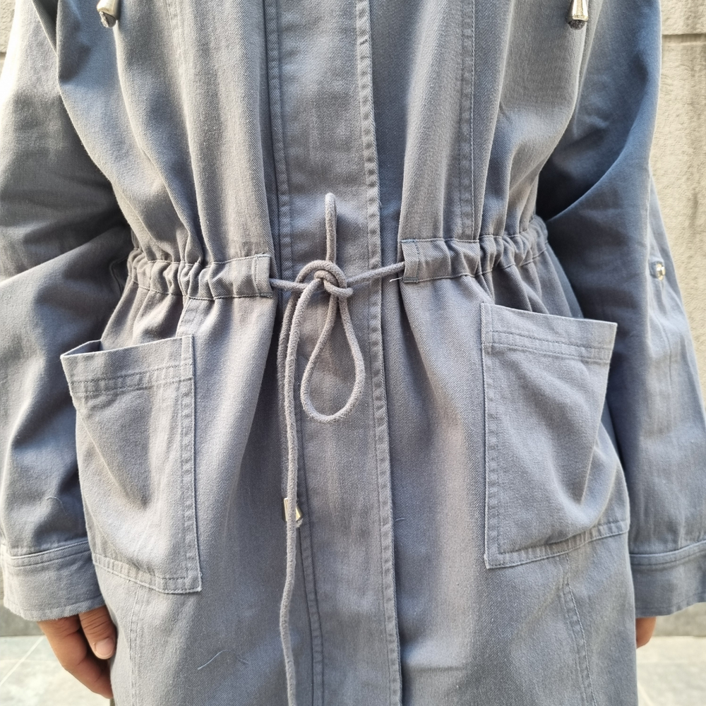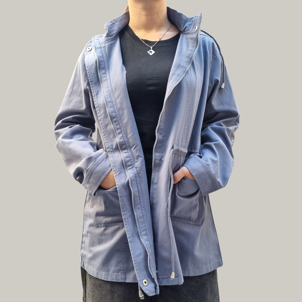 CAMPERA CHAQUETA GABARDINA CON CAPUCHA, CORDÓN, CIERRE Y 2 BOLSILLOS